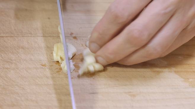 먼저 마늘을 다져 놓으세요.