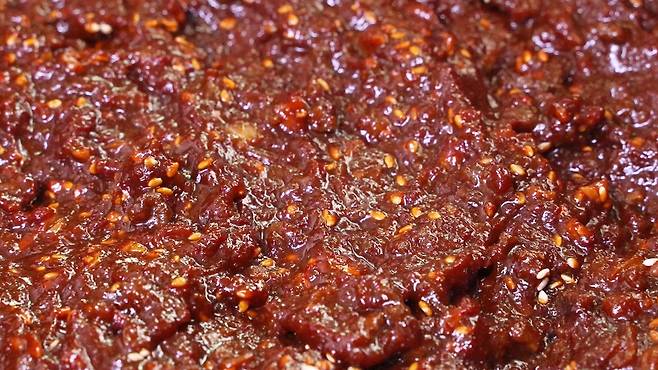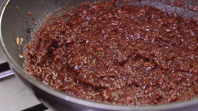 어느 정도 고추장이 볶아졌을 때 불을 끄면 됩니다.