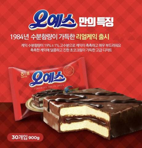 오예스는 초코파이와 반대로 딱딱한 쿠키가 아니라 아예 촉촉한 케이크 시트를 강점으로 내세워 반대 공법으로 제조를 시작합니다.