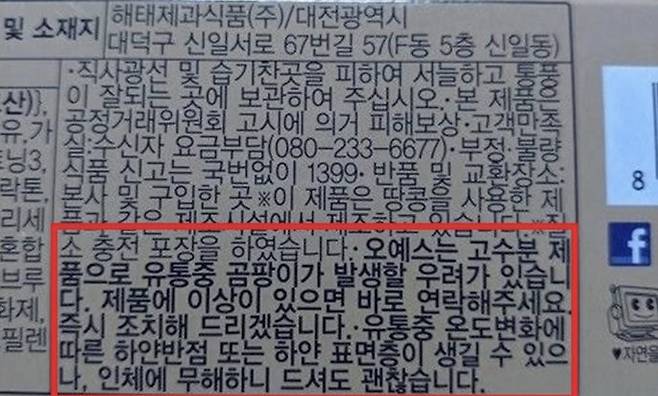 혹시라도 오예스를 먹다가 곰팡이를 발견하셨다면, 바로 고객센터에 문의하시면 빠르게 피드백을 해준다고 하니 이점도 참고하세요!