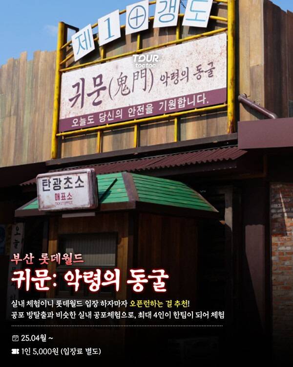 부산 롯데월드의 공포체험 귀문은 오픈과 동시에 많은 사랑을 받았던 실내 공포체험장입니다. 일반적인 귀신의 집과 유사하지만, 공포 방탈출을 연상케하는 구성이 특징인데요. 최대 4인이 한 팀이 되어 공간을 탐험하는 방식입니다.