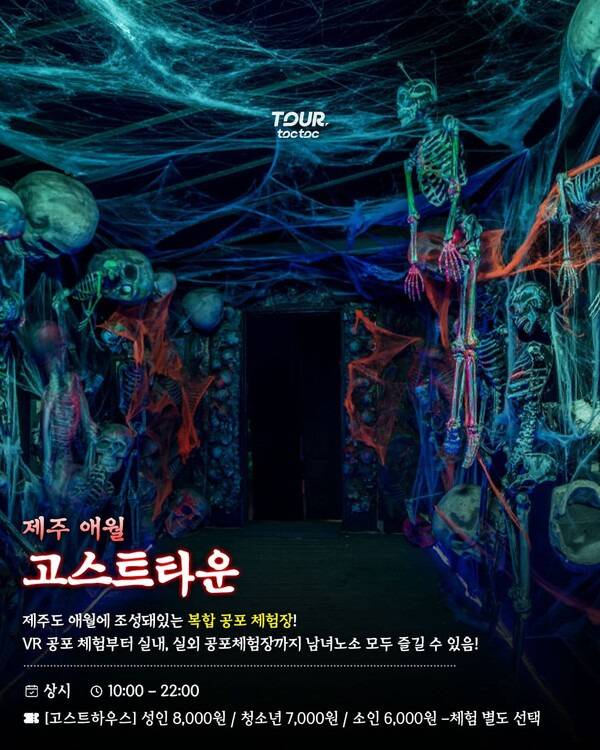 제주도에는 상시 운영되는 공포체험장이 있습니다. 관광객들이 가장 많이 찾는 애월에 위치한 제주 고스트 타운이 그 주인공입니다. 공포를 테마로 VR체험, 실내 귀신의 집, 야외 공포체험 코스 등이 조성돼있는 테마파크형 공포존이죠.