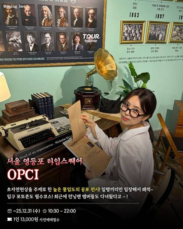 공포를 테마로 한 몰입형 공포 전시 OPCI는 영등포 타임스퀘어에 위치해있습니다. 초자연현상과 음모론을 주제로 한 고퀄리티의 체험형 공포 전시로, 생생한 세트장으로 구성되어 있습니다. 사전 예약제로 운영되고 있어 일행들과 쾌적하게 공포 체험을 즐길 수 있는데요.
