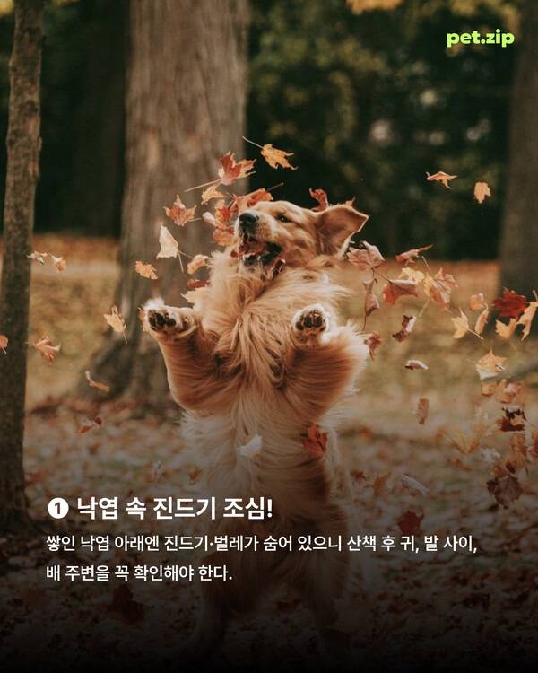 선선한 바람이 불며 산책하기 좋은 가을! 하지만 강아지에게는 낙엽 속 진드기부터 건조한 공기, 큰 일교차 등 주의해야 할 요소가 많습니다. 가을 산책 전 꼭 알아야 할 5가지 안전 포인트를 확인해보세요.