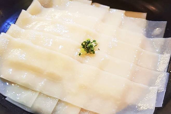 식감이 굉장히 쫀득해 마치 얇은 떡을 먹는 거 같고, 면이 넓어 혓바닥 전체에 닿는 촉감도 새롭다는 후기가 있었어요.