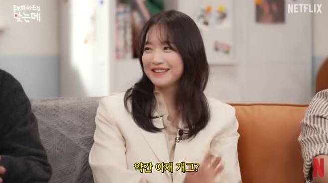 이어 유병재는 신민아에 대해 “친한 분들 앞에서는 막 농담도 많이 하고 개그도 많이 한다는데?”라고 물었고 신민아는 “친한 사람들 앞에서 웃기려고 하는 것 같다. 약간 아재개그 스타일이다”라고 밝혔다. 이에 박해수는 “한 두 마디 던지실 때 너무 재미있다. 차분하시지 않나. 그런데 차분하게 던질 때가 사실 더 웃기다”라고 신민아의 개그를 언급했다.