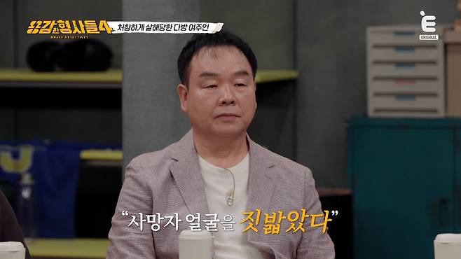 피해자는 다방 한가운데 천장을 보고 누운채, 이미 사망한 상태였습니다.