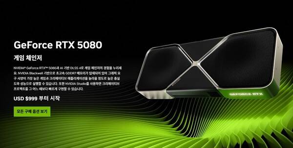 RTX 5080의 가격은 RTX 4080 Super와 동일한 $999(약 130만 원)로 책정됐다.