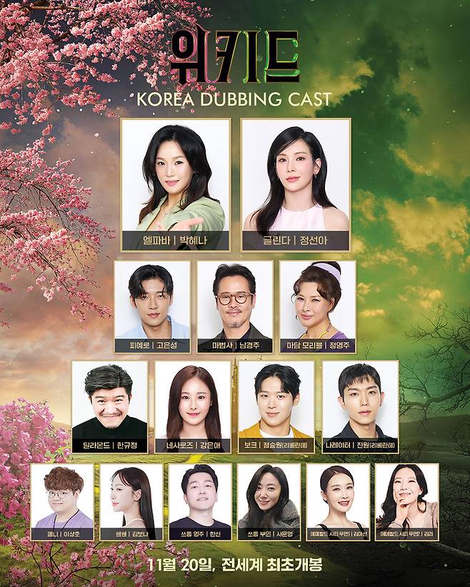 더불어 국내 뮤지컬 배우 및 성우들이 작품의 생동감을 더하는 국내 더빙 캐스트로 참여해 큰 화제를 모으고 있다. 이들은 영화 속 노래는 물론, 대사까지 맡으며 더욱 완벽한 몰입도를 선사할 것을 예고했다. 뮤지컬 <위키드>의 한국 초연과 재연에서 엘파바 역으로 참여하며 '엘파박', '박파바'라는 애칭을 얻은 뮤지컬 배우 박혜나가 엘파바의 목소리를 연기한다. 박혜나는 국내 최다 엘파바 공연 배우라는 기록까지 갖고 있는 만큼 이번 작품에서도 자신만의 섬세한 노하우로 엘파바로 분할 예정이다. 뮤지컬 <위키드>에서 글린다 역을 맡아 초연, 재연, 삼연에 걸쳐 활약하며 국내 최다 글린다 공연 기록을 세운 뮤지컬 배우 정선아 또한 함께한다. 사랑스럽고 밝은 이미지로 캐릭터를 완벽하게 소화하며 관객들의 큰 호응을 얻은 만큼, 이번에도 정선아만의 매력 넘치는 글린다를 선보일 예정이다. 쾌활한 서쪽 나라 왕자 피예로 역에는 <위키드>, <베르사유의 장미>, <프랑켄슈타인>, <헤드윅> 등 굵직한 작품에서 활약하며 뮤지컬계를 이끌고 있는 배우 고은성이 참여, 특유의 음색과 뛰어난 가창력으로 예비 관객들의 귀를 사로잡을 것을 예고했다.