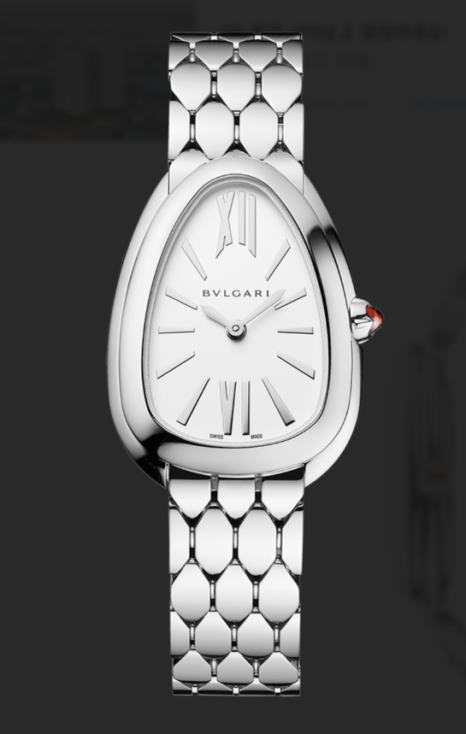 그런 그녀가 올 화이트룩에 착용한 불가리 세르펜티 세두토리 시계는 그 자체로 예술 작품이라 해도 과언이 아니에요. 이 시계는 불가리의 상징적인 뱀의 머리와 비늘에서