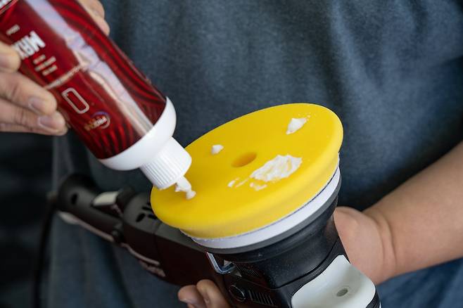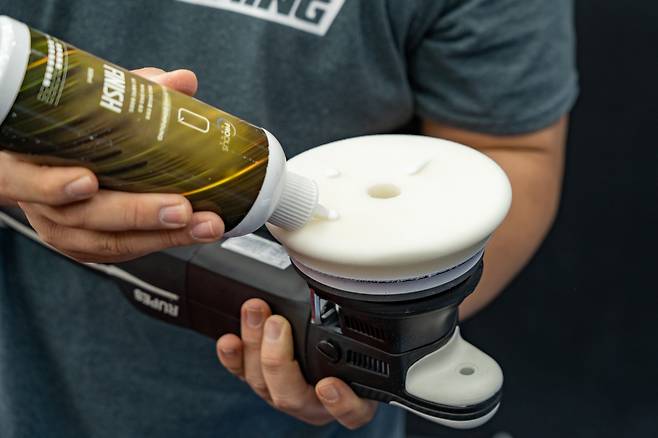 1차 광택 작업으로 굵직한 스크래치를 제거했다면, 이제 마무리 작업을 한 번 더 진행할 차례다. 이번엔 좀 더 부드러운 패드와 연마제를 이용해 미처 제거되지 않은 미세한 흠집들을 없애야 한다. 특히 두 번째 컴파운드는 도장면의 광택감을 더욱 높일 수 있다.