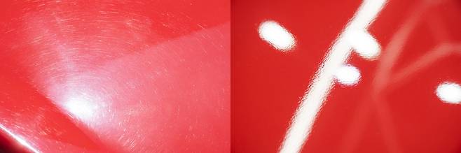 모든 작업이 끝나고, 광택 작업을 하지 않은 면과 비교했다. 확실히 작업을 한 오른쪽 도장면의 스월마크가 제거된 모습이며, ‘오돌토돌’하게 느껴졌던 도장면의 감촉도 한층 매끈하게 정리됐다. 또한, 차체 컬러 본연의 깊은 색감이 살아나 만족감이 높다.