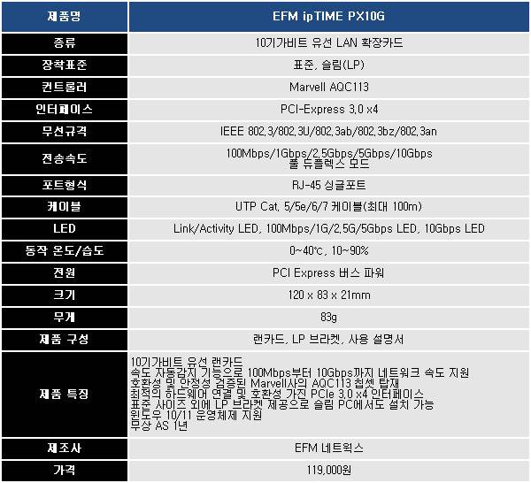 EFM 네트웍스에서 10기가비트(10Gbps) 네트워크를 구축할 수 있는 유선랜카드 ipTIME PX10G를 출시했다.