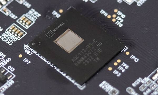 이더넷 컨트롤러는 호환성과 안정성이 검증된 Marvell사의 AQC113 칩셋이 달려있다. 14nm FinFET 공정의 Marvell 스케일러블 mGig 이더넷 컨트롤러 AQC113은 PCIe Gen4 PHY 및 저전력 10G MAC, 싱글 포트 10G 이더넷 PHY 등을 통해 10Gbps 회선 속도를 쉽게 처리하며, 10Gbps부터 100Mbps까지 6가지 네트워크 속도를 모두 지원한다.