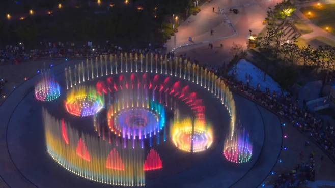 둘레 180m, 세계 최대 규모의 바닥분수로 기네스북에도 오른 만큼 규모부터 다르죠. 저녁이 되면 수평선 저 멀리 붉은 해가 바다로 스며들고, 동시에 음악에 맞춰 수백 개의 물줄기가 춤을 추듯 터져 나옵니다.