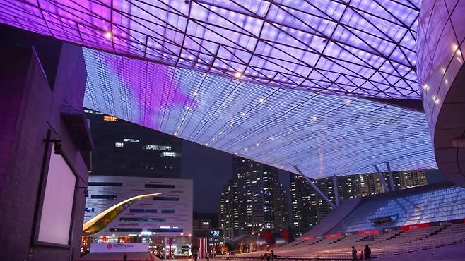 부산 하면 빠질 수 없는 장소, 영화의전당. 그중에서도 특히 밤이 되면 존재감을 드러내는 건 바로 ‘빅루프(Big Roof)’입니다. 세계 최대 규모의 구조 지붕으로, 총 길이 163m, 무게 4,000톤에 달하는 이 거대한 루프는 그 자체만으로 하나의 예술작품 같아요.