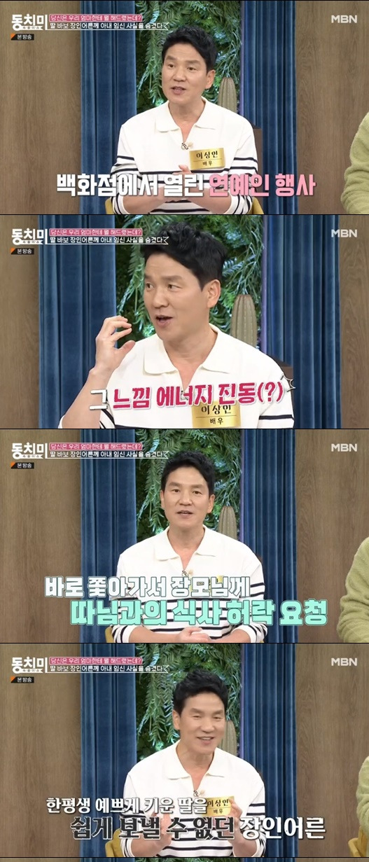 이상인은 "46살 때까지 결혼을 못하고 아버지에게 쫓겨나기까지 했다. 집을 3년간 못 갔다. 그랬다가 백화점에서 행사가 열렸다. 그때 집사람과 장모님이 쇼핑 목적으로 왔다가 저랑 대화를 하게 됐다"고 말했습니다.