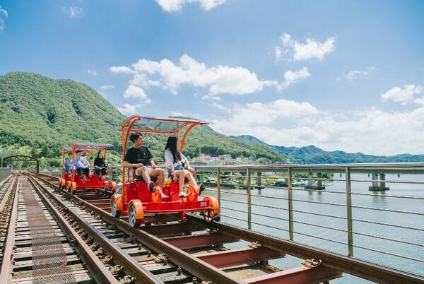반자동으로 달리는 바이크기 때문에 힘들이지않고 아이들도 즐기기 좋은데요. 레일바이크의 시원한 속도감과 더불어 형형색색의 풍경이 다채로운 즐거움을 선사해 아이와 함께 가평 가볼만한 곳입니다.