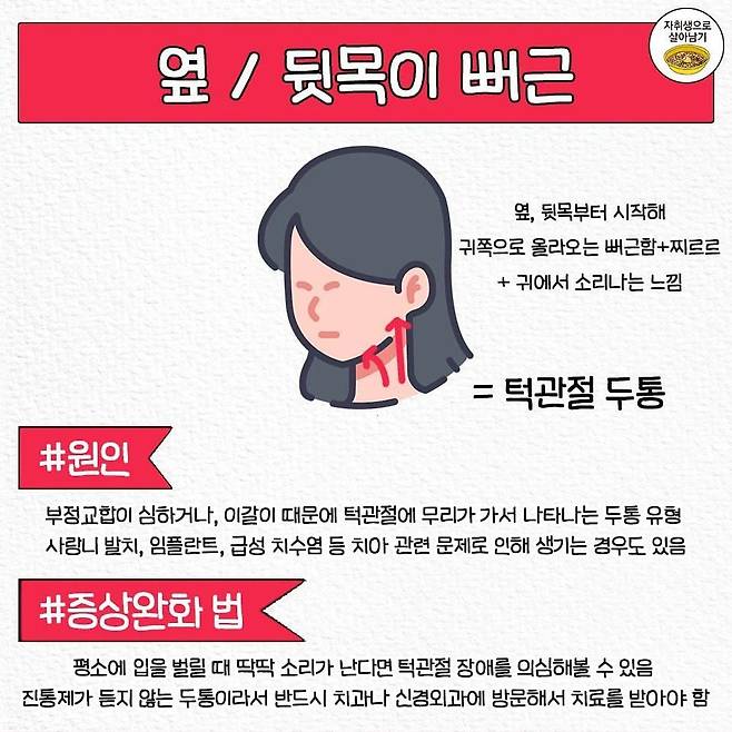 원인: 과도한 스트레스, 수면 부족, 잘못된 자세