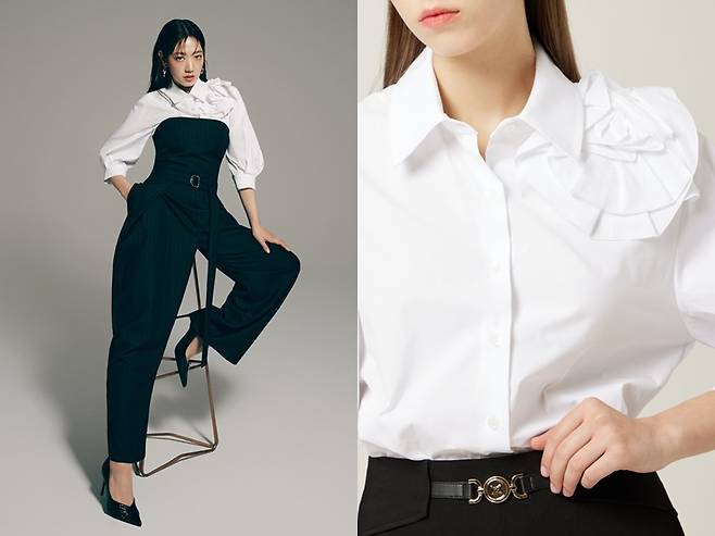 어깨 부분 플라워 포인트가 매력적인 셔츠와 점프수트 착장 도 넘 취저 ♥