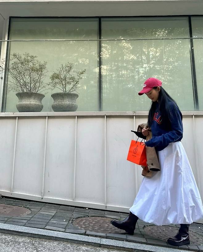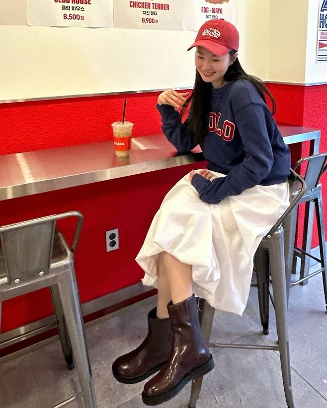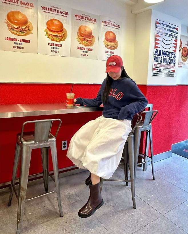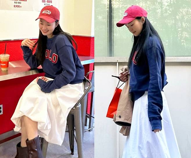 특히 류이서는 네이비 컬러의 스웨트셔츠에 화이트 롱스커트를 매치해 경쾌하면서도 우아한 분위기를 살렸으며, 여기에 다크 버건디 컬러의 첼시 부츠로 세련미를 더했습니다.