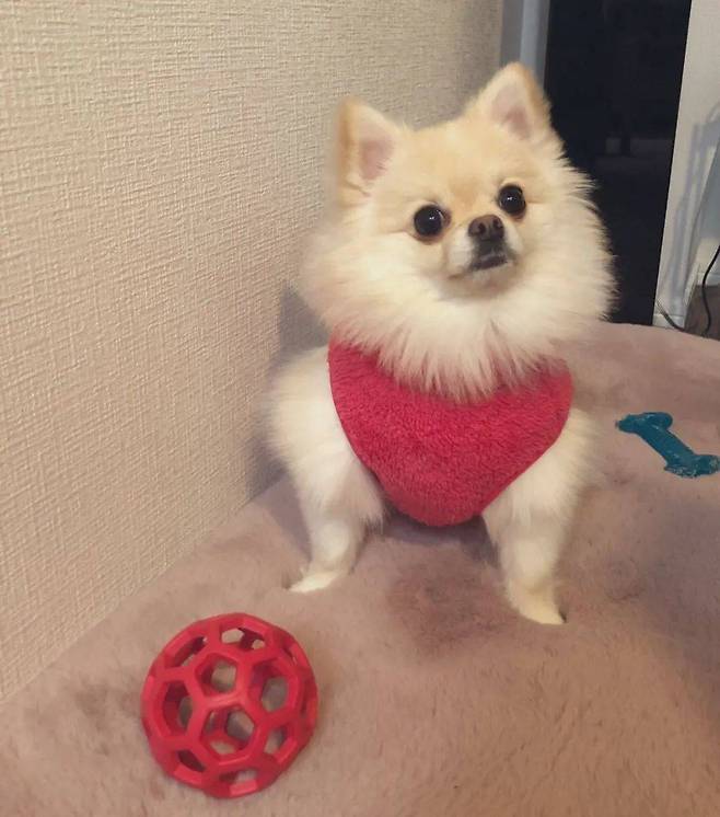 옷이 도착해서 강아지에게 입혔는데, 빨간색도 그렇고 강아지의 신체비율이 엄청 이상해졌습니다.