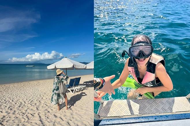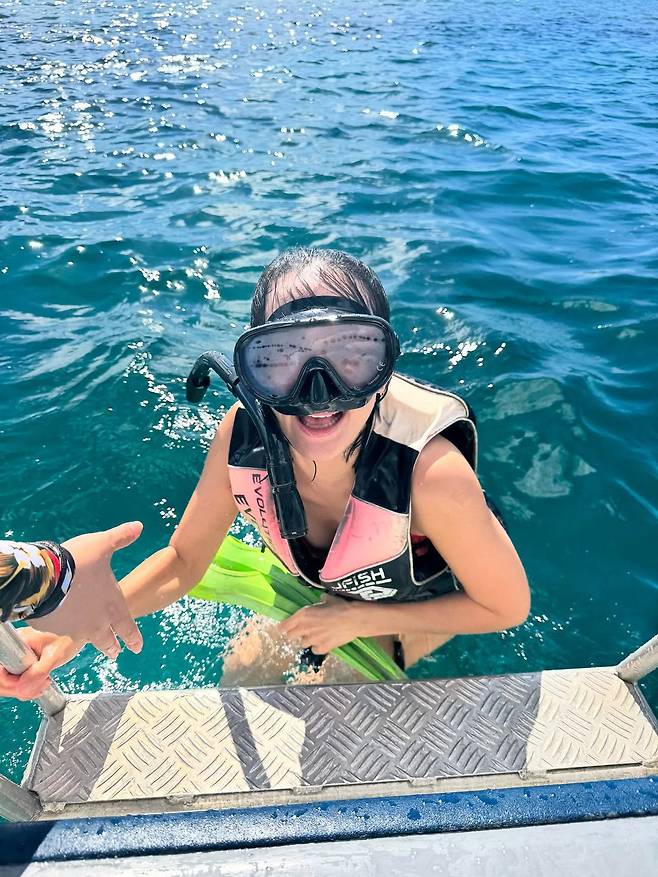 또 다른 사진에서는 구명조끼와 수경을 착용한 채 직접 바다에 입수하는 모습으로 건강미와 자유로운 에너지를 동시에 선보였다.