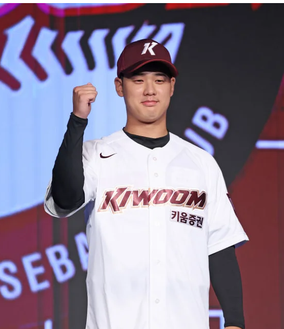 2026 신인드래프트 전체 1순위로 지명된 박석민의 아들 박준현에게 입혀진 유니폼과 모자에 메인 스폰서인 키움증권이 빠져있음.