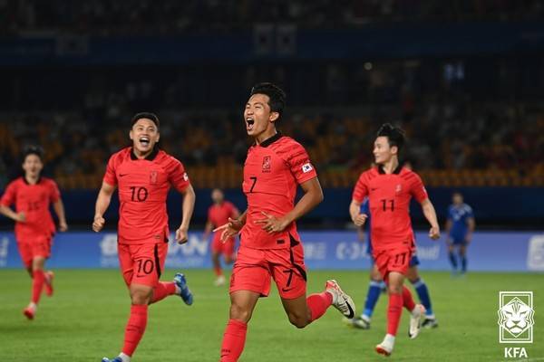 [풋볼리스트] 조효종 기자= 한국 아시안게임 남자 축구 대표팀이 첫 경기부터 기분 좋은 대승을 거뒀다.