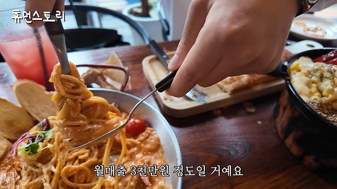 이 상권은 원래 손님들이 잘 안 오던 곳이라, 손님들을 끌어올 수 있게 여자분들이 좋아할 만한 느낌으로 만든 신규 브랜드가 '오지테이블'입니다. 오지테이블 건물도 저희가 지주분께 돈을 받아서 디자인하고 지었죠. 브런치 카페인데, 이 점주님은 인수한 지 6년이 넘었는데도 매출이 계속 상승하고 있으며, 이번 8월에는 최고 기록인 1억 원 매출을 잡았습니다.