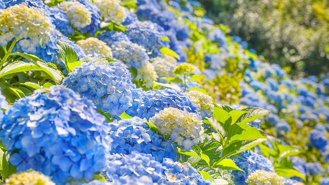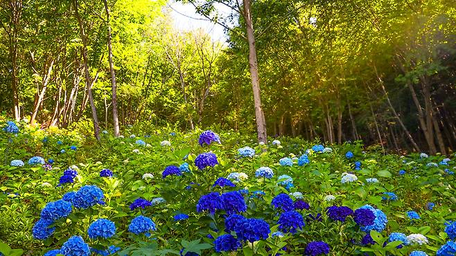 보랏빛, 하늘색, 연분홍 등 다양한 색으로 물드는 수국은 초여름의 짧은 순간을 아름답게 장식한다.