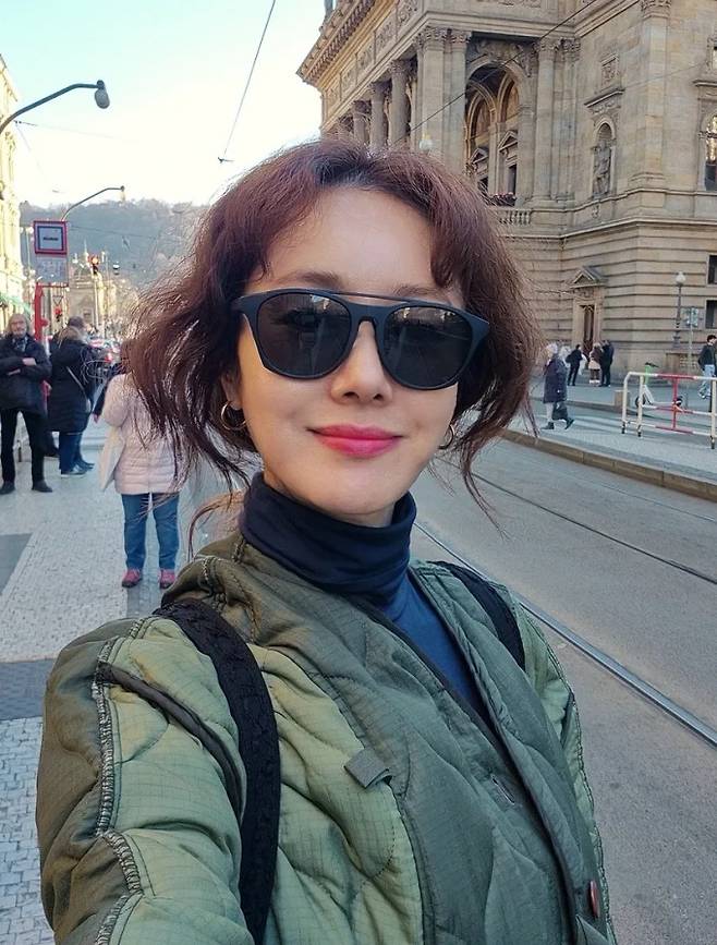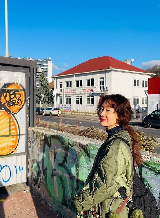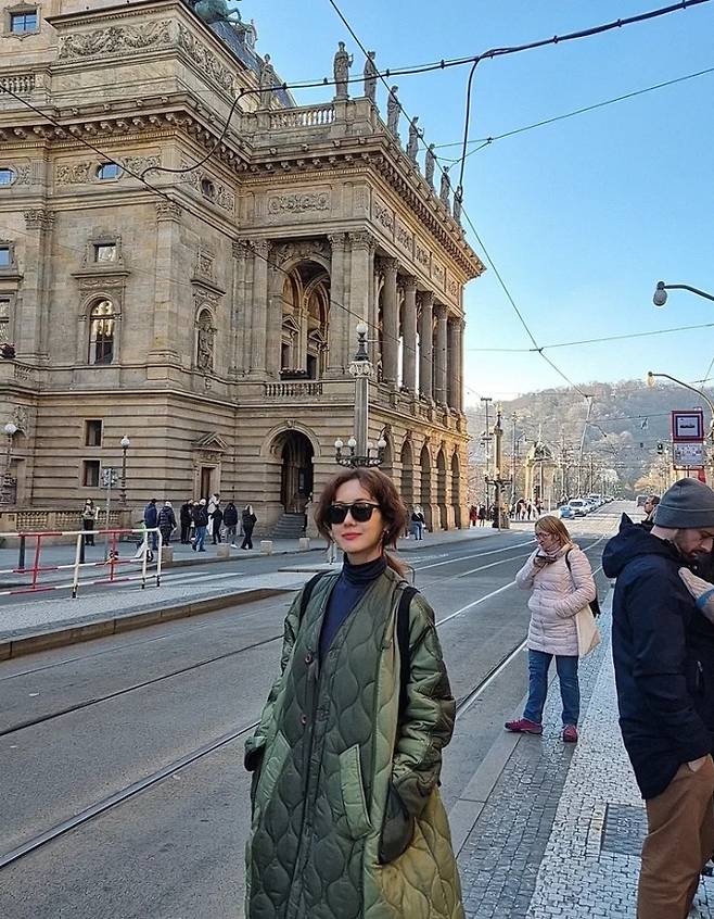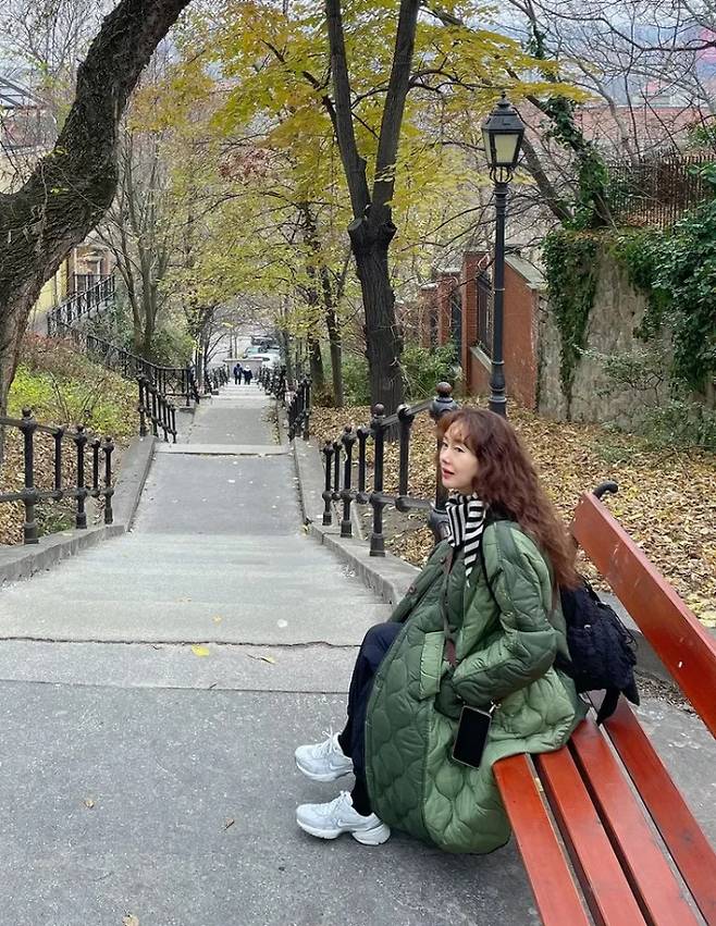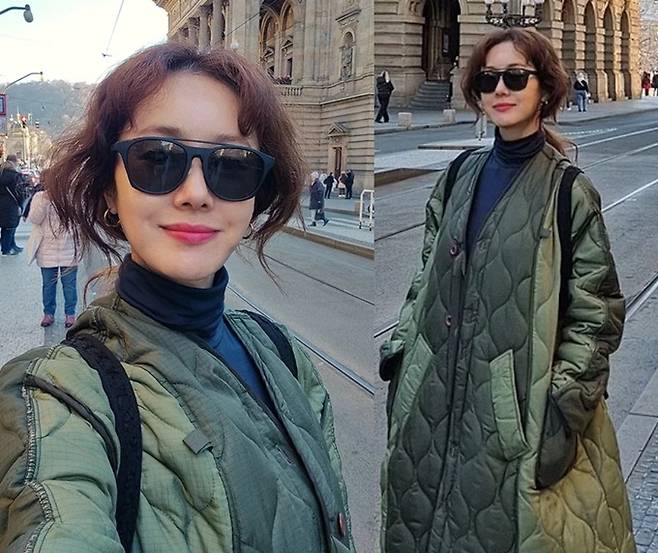 배우 김지수가 툭 걸친 깔깔이 패딩 코트 하나로 부다페스트 여행을 만끽했다.