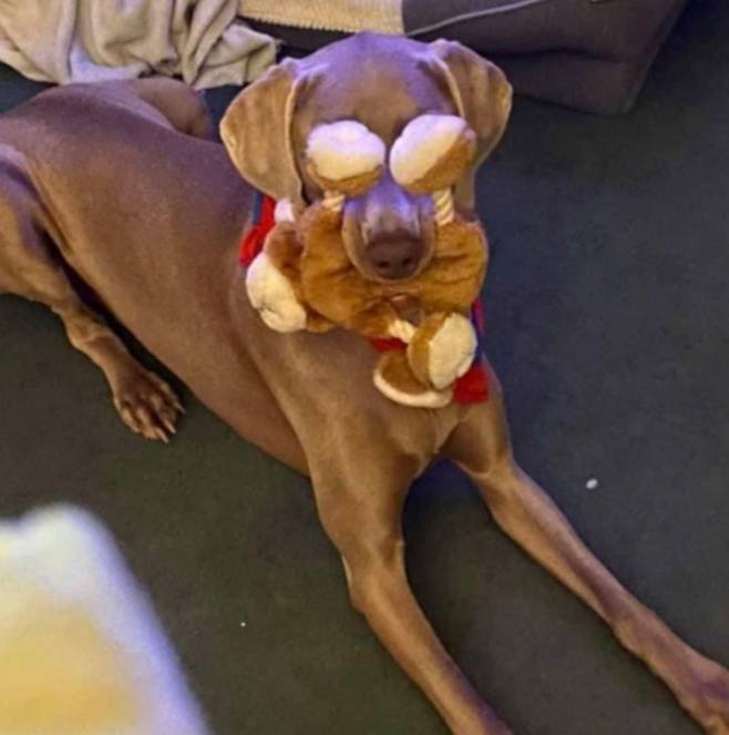 “한 번은 디젤이 인형을 물었는데, 인형의 팔다리가 얼굴을 덮어서 눈이 안 보이는 상태가 됐어요. 그런데 그 모습이 너무 웃겨서 제가 크게 웃었죠. 그 이후로 디젤은 항상 그 인형만 가지고 놀아요.”