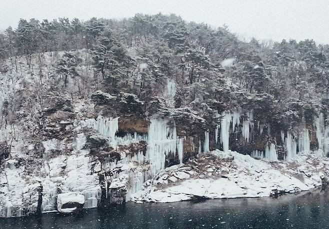 한탄강 물윗길이 특별한 이유는 분명합니다. 유네스코 세계지질공원 으로 지정된 한탄강 위에 부교를 띄워, 강 한가운데를 직접 걸을 수 있도록 만든 길이기 때문입니다. 눈이 내린 날이면 풍경은 더욱 또렷해집니다. 주상절리 절벽 사이로 얼어붙은 강물이 펼쳐지고, 그 위를 천천히 걸으며 겨울 한탄강을 눈높이에서 마주하게 됩니다. 산길도, 호숫길도 아닌 ‘강 위를 걷는 길’이라는 점에서 이곳은 단순한 산책이 아닌 겨울에만 가능한 하나의 경험으로 기억됩니다.