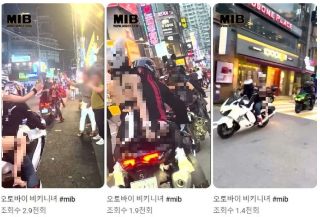 지난 12일 국내 성인 영상 제작사인 '엠아이비(MIB)'의 유튜브 채널에 '오토바이 비키니녀'라는 제목으로 다수의 쇼츠(1분 내외의 짧은 영상)이 게재됐다. 영상에는 비키니만 입은 네 명의 여성들이 남성이 운전하는 오토바이 뒤에 동승해 강남구 테헤란로 일대를 누비는 모습이 담겼다.