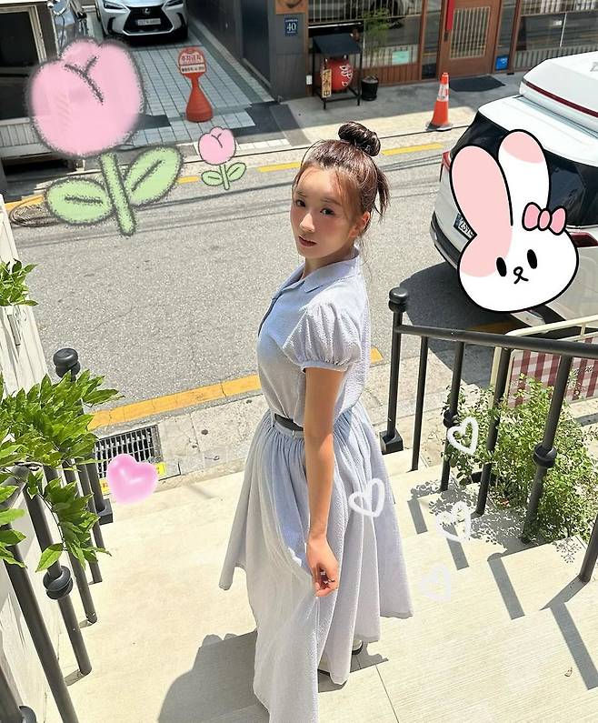 따스한 햇살이 쏟아지는 창가에 앉은 윤보미가 눈부신 소녀 감성을 뽐냈다. 인스타그램에 공개된 사진 속 윤보미는 밝고 부드러운 블루 스트라이프 원피스를 착용하고, 단정하게 올려 묶은 헤어스타일로 청순미를 극대화했다. 상큼한 오렌지와 컬러풀한 플라워 장식이 놓인 테이블을 배경으로, 아늑하고 따뜻한 분위기를 자아냈다.