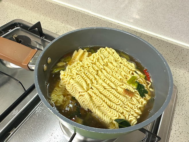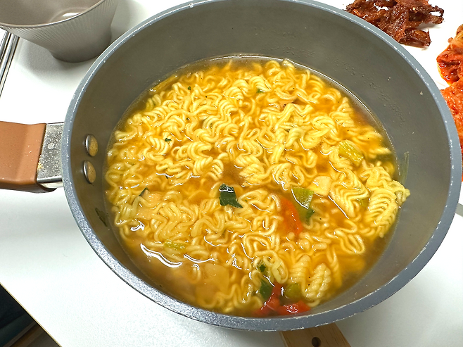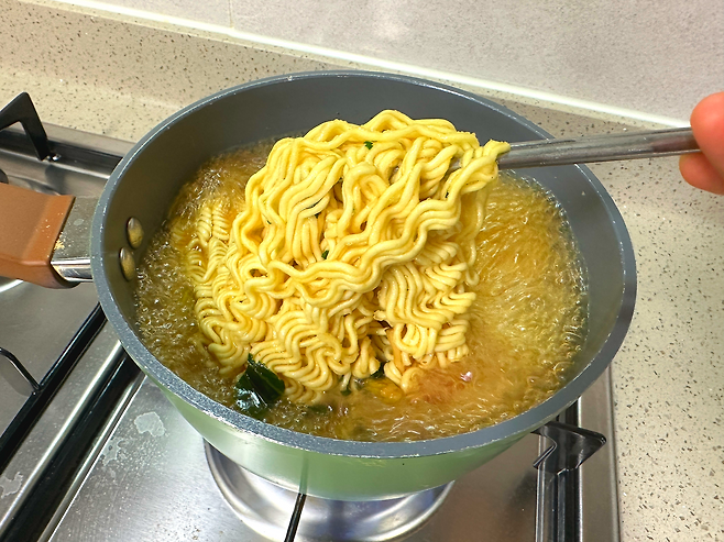 그다음 3분 동안 삶아주면 라면회사가 알려준 라면 끓이는 방법인데요.