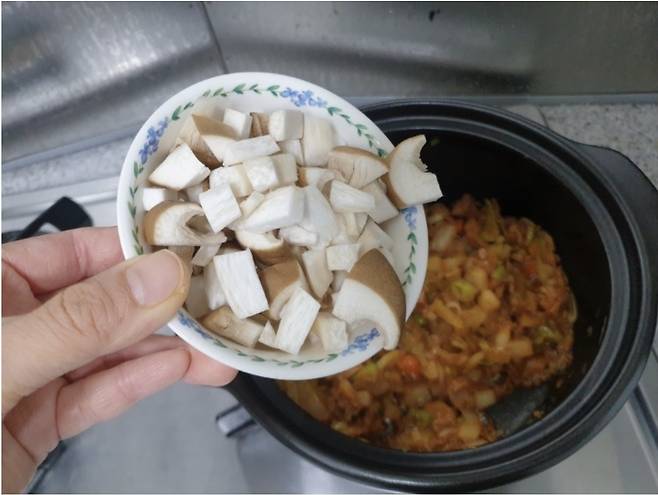 버섯, 채소, 호박 등을 넣어주면 더 맛있어요