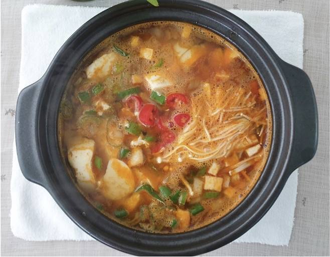 좀 더 얼큰하게 고춧가루 한 큰 술 넣어주면 더 맛있어요