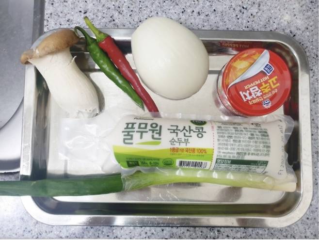 순두부, 대파, 양파, 고추참치, 버섯, 청양고추, 홍고추