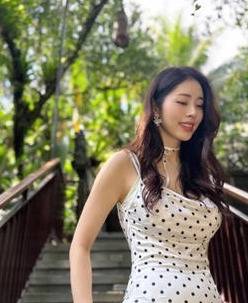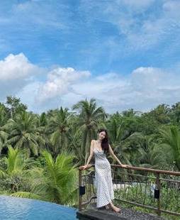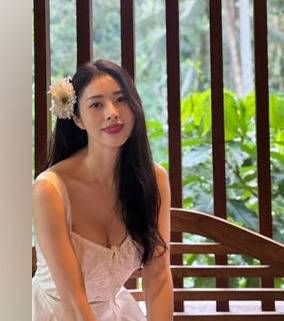 야외 계단 위에서 포즈를 취한 모습은 마치 영화 속 한 장면 같았고, 풀빌라 테라스에서는 시원한 하늘과 야자수를 배경으로 여유롭고도 당당한 매력을 발산했습니다.