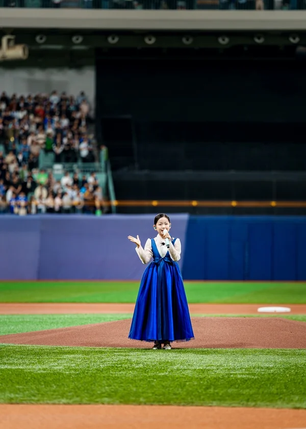 이수연은 단정한 푸른 생활한복 차림으로 마운드에 섰다. 반주는 없었다. 그녀는 흔들림 없이 또렷한 목소리로 애국가를 불렀고, 그 한 소절 한 소절이 야구 팬들의 마음에 깊이 꽂혔다. 무대보다 더 긴장되는 순간, 그녀는 눈웃음과 진심 어린 태도로 경기장의 공기를 따뜻하게 바꿔놓았다.