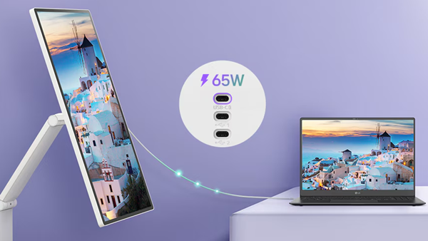 다만, 해상도는 QHD 수준에 머무르고, 포트 구성도 LG 스윙에 비해 단순(HDMI 1개, USB-C 포트 2개)하다. 고정된 오피스 환경에서는 기능 면에서 약간 부족하게 느껴질 수 있다.