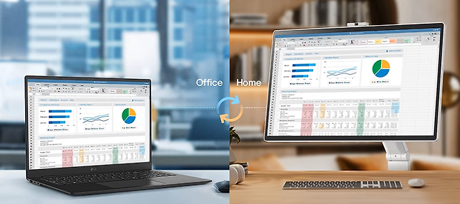 LG 스윙은 단순한 영상 시청용 기기가 아니다. webOS 24를 기반으로 별도의 PC 없이도 홈 오피스를 구현할 수 있으며, 다양한 콘텐츠를 즐길 수 있는 스마트 기능까지 갖췄다. 문서 작성, 일정 관리 등 클라우드 PC나 원격 데스크톱 접속을 통해 업무 환경을 그대로 불러올 수 있고, 화상회의나 온라인 수업에도 최적화되어 있다.