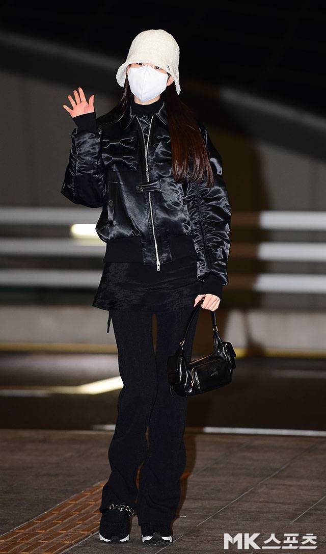 장원영은 벨벳 스커트를 착용하여 독보적인 기럭지를 뽐냈습니다. 또, 장원영은 양털 버킷 햇을 착용해 편안하면서도 귀여운 이미지를 자아냈습니다. 특히 장원영은 밴딩 유광 점퍼를 착용해 잘록한 허리라인을 드러냈습니다.