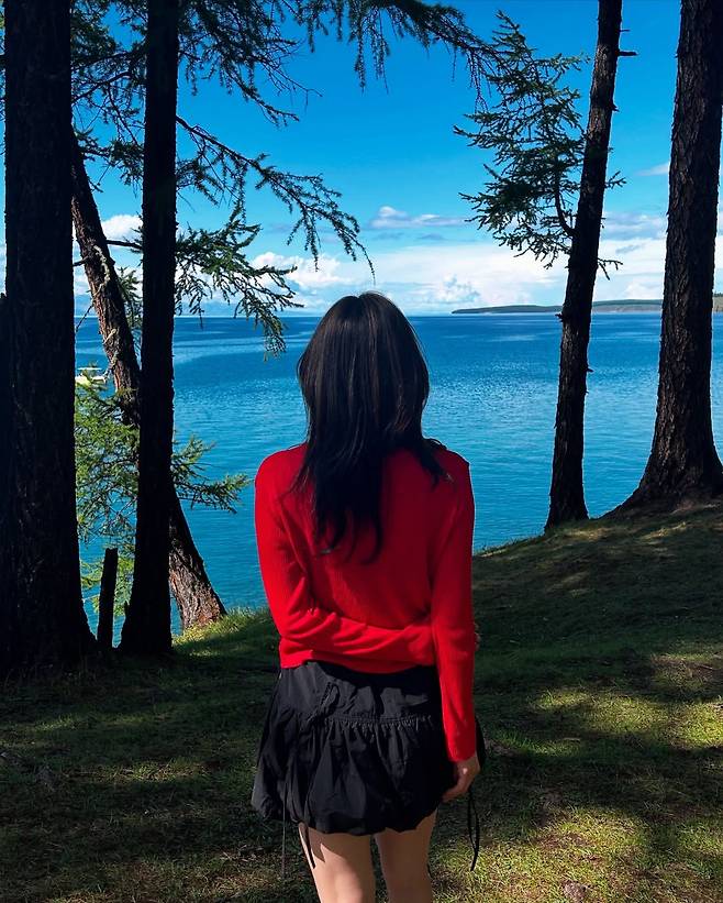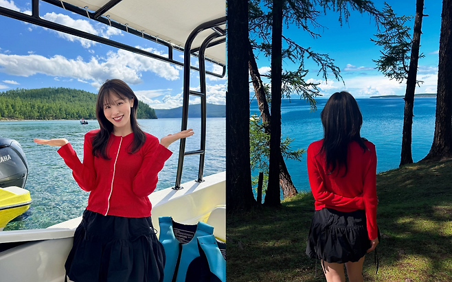 보트 위에서 활짝 웃는 모습과 호숫가에서 등을 돌린 뒷모습을 담은 두 장의 사진이 팬들의 뜨거운 반응을 불러일으키고 있다.