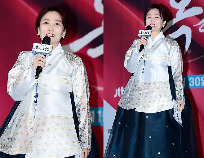 특히 박경림이 착용한 우아한 흰색 저고리와 푸른빛 치마에 금박 디테일이 조화를 이루며 고혹적인 자태를 한껏 살렸습니다.