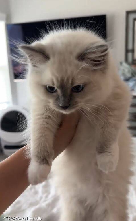보호자의 손에 잡혔을지언정, 녀석은 성난 얼굴로 보호자를 노려볼 뿐 그루밍을 멈추진 않을 듯합니다.