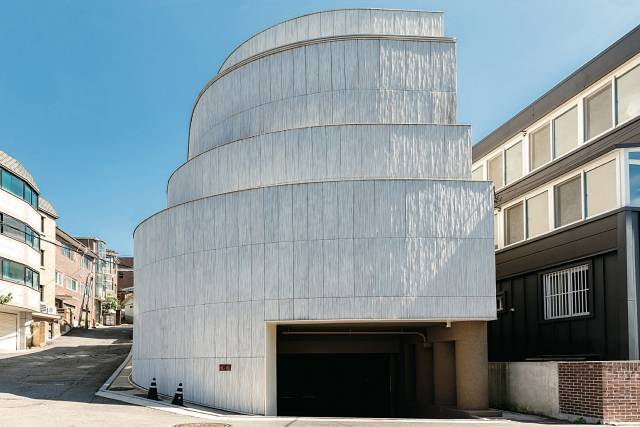 그래픽은 만화책만큼 재미있는 곳이었습니다. 핫플레이스 인증과도 같았던 ‘~리단길’의 원조인 서울 이태원 경리단길에서 조금 벗어난 주택가에 위치한 이곳은 외관부터 궁금증을 자아내기 충분했습니다. 네 겹의 원기둥을 4분의 1로 잘라낸 듯한 건물은 간판은 고사하고 창문 하나 없이 성곽처럼 내부를 꽁꽁 감싼 형태를 하고 있었습니다. 그야말로 아는 사람만 오가는 요새이자 아지트로 완벽한 어른들의 놀이터였습니다.