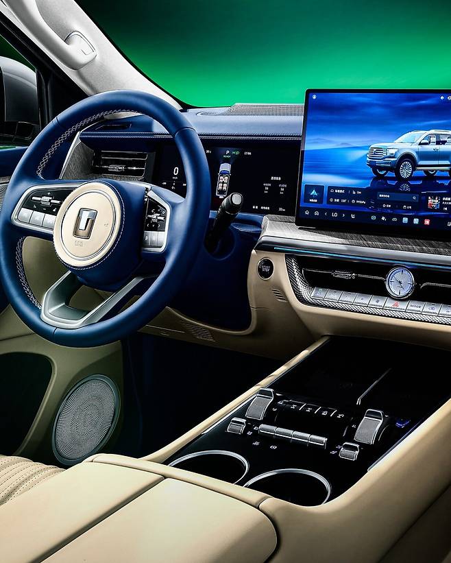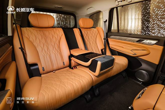 실내는 기존 Tank 500의 화려한 라인업을 유지하면서도, 14.6인치 플로팅 인포테인먼트 화면, 12.3인치 디지털 계기판, 글로브박스 밑 냉장고, Nappa 가죽 시트의 열선 및 통풍, 무선 충전, 17.3인치 뒷좌석 디스플레이 등 최고급 편의 사양을 그대로 계승했습니다.